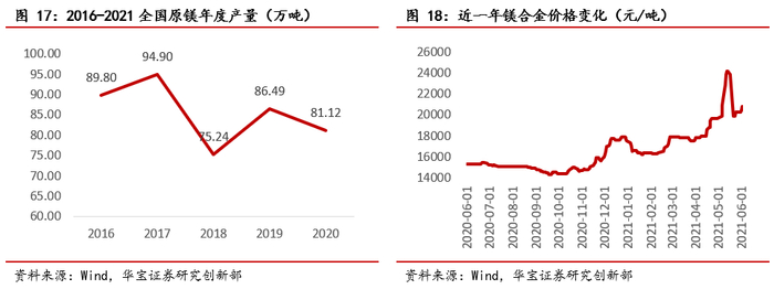 由于原镁占镁合金成本的80%,镁合金价格随着原镁价格变动而变化。原镁价格上涨有利于成本较低的生产企业,叠加企业扩产产能的释放,有利于业绩提升。