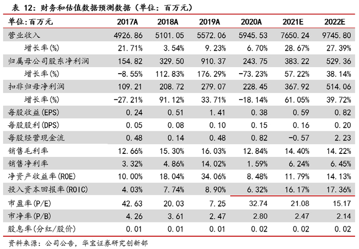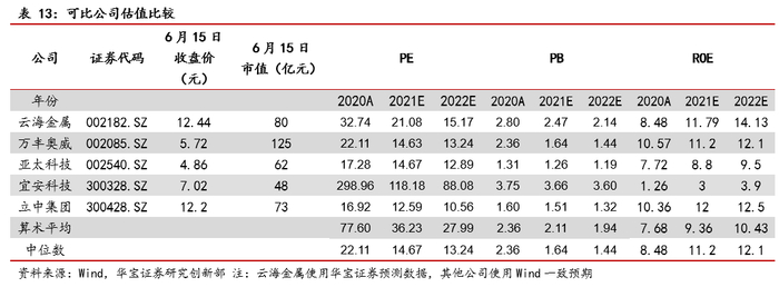 公司主营业务为镁、铝合金产品的生产、加工与销售,根据上述公司盈利预测情况,预计公司2021/2022年归母净利润分别为3.8/5.3亿元,对应的EPS分别为0.59/0.82元。6月15日收盘价为12.44元,对应2021/2022年PE分别是21.08/15.17倍,首次覆盖给予“增持”评级。