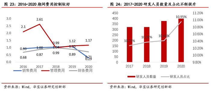 20年公司财务费用同比减少20.22%,公司也表示未来将充分利用非公开发行、公开发行、可转债等直接融资手段,多方式银行融资,降低融资成本;21年一季度销售费用同比下降72.05%,主要是采用新准则将销售运费计入营业成本中;管理费用较上年同期增长40.71%,主要是职工薪酬较上年同期增加。