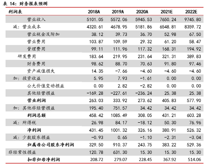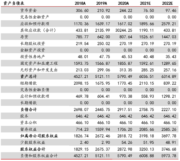 预计公司2021年、2022年营收将维持28.67%和27.39%的高增长。公司主产品镁合金和铝合金的销售量均有所增加,随着行业的复苏及应用的拓展,市场需求在增加,公司的市场占有率也在增加,主产品销量的增加会成为公司主要的增长点。另外镁铝价格近期都一直处于上升状态,虽然原材料价格也在上涨,但是原材料价格上涨的幅度低于产品价格的上涨幅度,对于公司盈利有正面影响。