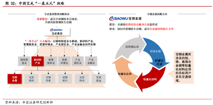 中国宝武拥有国际化的市场资源。中国宝武是全球领先的特大型钢铁联合企业,作为国内唯一具有汽车板全品种的钢铁供应商,宝钢在全球率先具备第一、二、三代超高强钢研发和批量供应能力,已跻身国际知名汽车制造供应商行列。2017年其核心产品汽车板产量位居全国第一、世界第三,其中冷轧汽车板878万吨,突破68%的市场份额;超高强钢销量近45万吨、市占率达60%。宝钢采用EVI服务模式深度参与汽车厂产品设计、模具开发、现场工艺等环节,确保品质同时提升技术壁垒与客户粘性。客户方面,宝钢产品在日系和欧美合资品牌占有率较高,并用于奥迪、宝马、奔驰等高级轿车。公司与宝钢金属的战略结合,将从研发、生产到销售均形成优势互补,依托宝钢强大的汽车市场背景,加速合金材料在汽车轻量化领域的渗透。