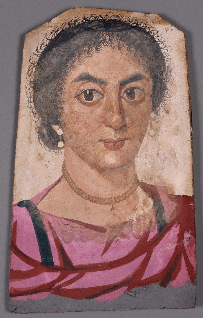 《一个女性木乃伊肖像画》,公元175-200年,蛋彩画。The J. Paul Getty Museum,79.AP.129,现展出于盖蒂别墅210陈列室。