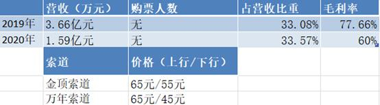 此外,从索道业务在各景区公司总营收比重中的变化也可看出,虽然2020年经受暂停运营、游客量“腰斩”等冲击,但各公司索道业务营收依然保持稳定。例如峨眉山A,2020年索道业务营收占比为33.57%,仅较2019年减少0.49个百分点。