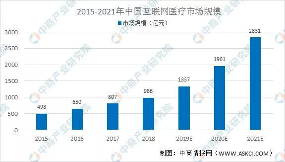 随着“互联网+医疗健康”政策落地细则发布,互联网诊疗的标准明晰。据中商情报网的数据显示,随着中国互联网医疗行业的不断发展,市场规模将持续增长,2021年将扩至2831亿元。