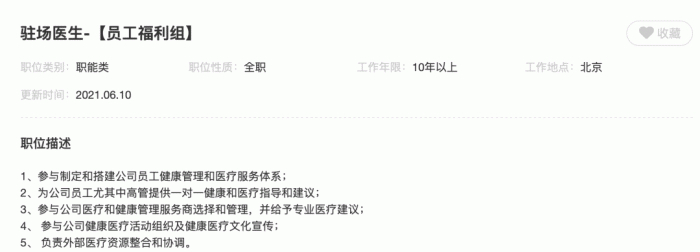 与此同时,快手的社招官网上,则发布了一条驻场医生的招聘信息,职位描述中特别是参与公司医疗和健康管理服务上选择和管理,以及负责外部医疗资源整合和协调等,不难看出,快手希望摸索和搭建医疗服务体系。