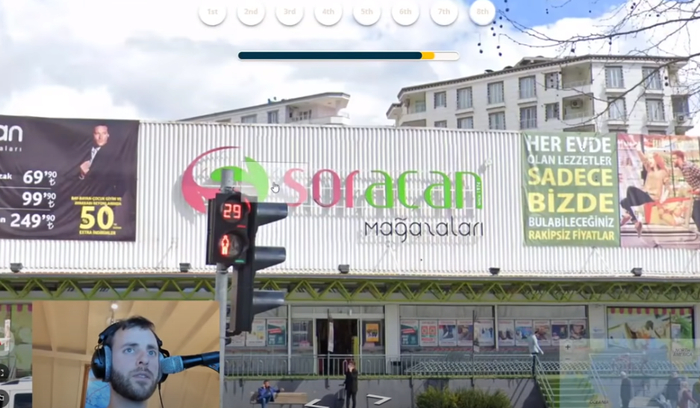 今年三月,这款在谷歌街景地图上散步的游戏毫无征兆地在Youtube和Twitch的各大直播间成为了热门话题,对于初次进入直播间的观众们来说,游戏区主播突然开始对着显示器上的谷歌街景苦思冥想,画面实在有些怪异。大概看上十来分钟,他们可能才会在沙滩海岸高速公路的来回更替中醒悟过来:这确实是一款游戏。