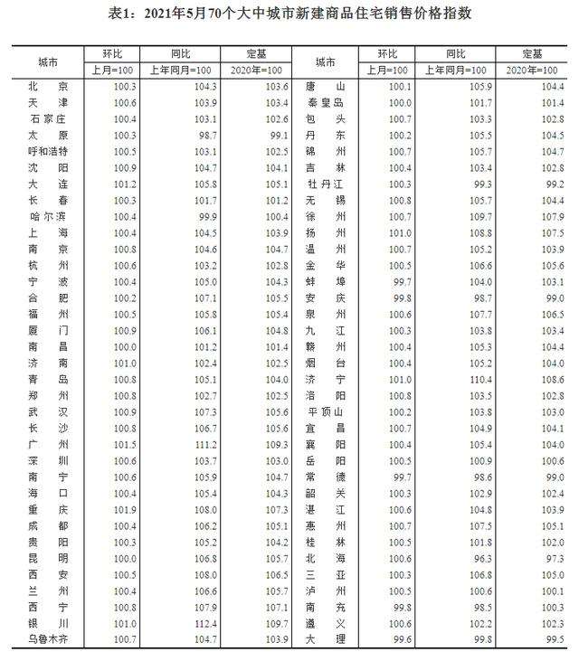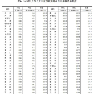 国家统计局城市司首席统计师绳国庆解读称,2021年5月份,统计监测的70个大中城市商品住宅销售价格涨幅基本保持稳定态势。
