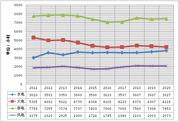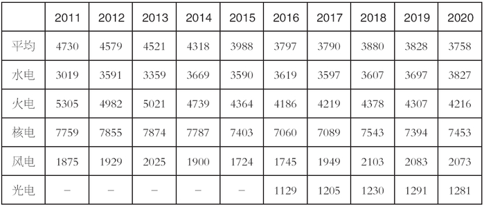 表5-6 2011~2020年发电设备利用小时数(单位:小时)