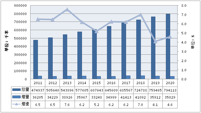 2020年全国新增220千伏及以上变电设备容量22288万千伏安,比上年少投产1526万千伏安,同比减少6.4%;全国新增220千伏及以上输电线路回路长度3.5万千米,与上年投产量相当,同比减少2.5%;新增直流换流容量5200万千瓦,比上年多投产3000万千瓦,同比上升136.4%。
