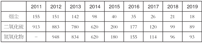 表5-8 2011~2019年电力行业排放总量情况(单位:万吨)