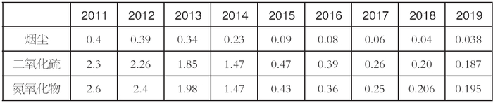 表5-9 2011~2019年电力行业排放绩效(单位:克/千瓦时)