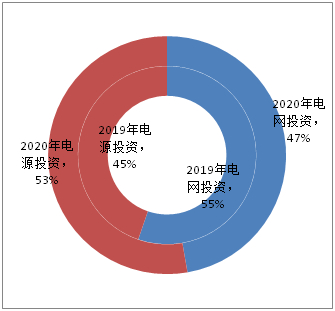 2020年全国电源基本建设投资占电力投资比重的53%,较上一年增加8个百分点;电网基本建设投资占电力投资的比重为47%,较上一年降低8个百分点。