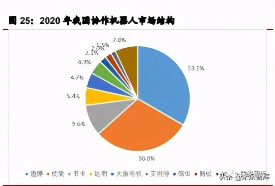 协作机器人出货量快速增长,遨博、优傲占据市场 2/3。协作机器人市场规模从2016 年的 1714 台快速增长到 2020 年的 7514 台,年复合增速达到 44.70%,预 计到 2022 年,我国协作机器人市场规模有望增长到 9426 台。从市场结构来看, 行业内两大领导者遨博和优傲分别占据 33.3%和 30%,合计占据我国协作机器人 市场份额的 2/3。