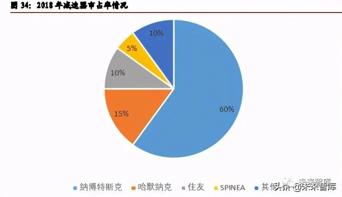 全球减速器市场中谐波减速器行业龙头为哈默纳科,RV 减速器的行业龙头为纳 博特斯克,目前在精密机器人减速器市场中,上述两家公司凭借雄厚的资本实力 和长期的技术积累,占据了全球工业机器人减速器市场 75%左右的份额。国产减 速器龙头为绿的谐波,虽然其较早地完成了工业机器人谐波减速器技术研发并实 现规模化生产,实现了对进口产品的替代,但分析其减速器产品出口均价我们可 以发现,公司销售给境外的谐波减速器平均价格低于销售给境内的客户,主要原 因是销往境外的产品主要是Universal Robots购买的小型谐波减速器。