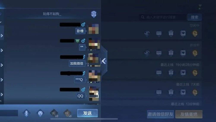 相比礼物赠送的各种限制,主流游戏在用户隐私层面还有诸多漏洞。游戏系统中仍然存在私加微信和QQ的问题,极易导致霸凌者绕开游戏的监管,针对未成年人进行进一步的霸凌和欺诈。而在游戏系统内,很多游戏还存在着可以直接向其他用户索要账号密码的缺陷。
