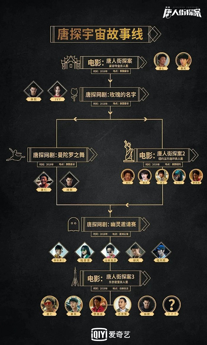 虽然有以围绕南派三叔《盗墓笔记》的“盗墓笔记宇宙”、《白夜追凶》为中心的“白夜宇宙”以及今年初初露面的“小说家宇宙”等,但以“元祖”漫威宇宙、DC宇宙为范例,目前唯一称得上成功的是由电影《唐人街探案》所衍生的“唐探宇宙”。