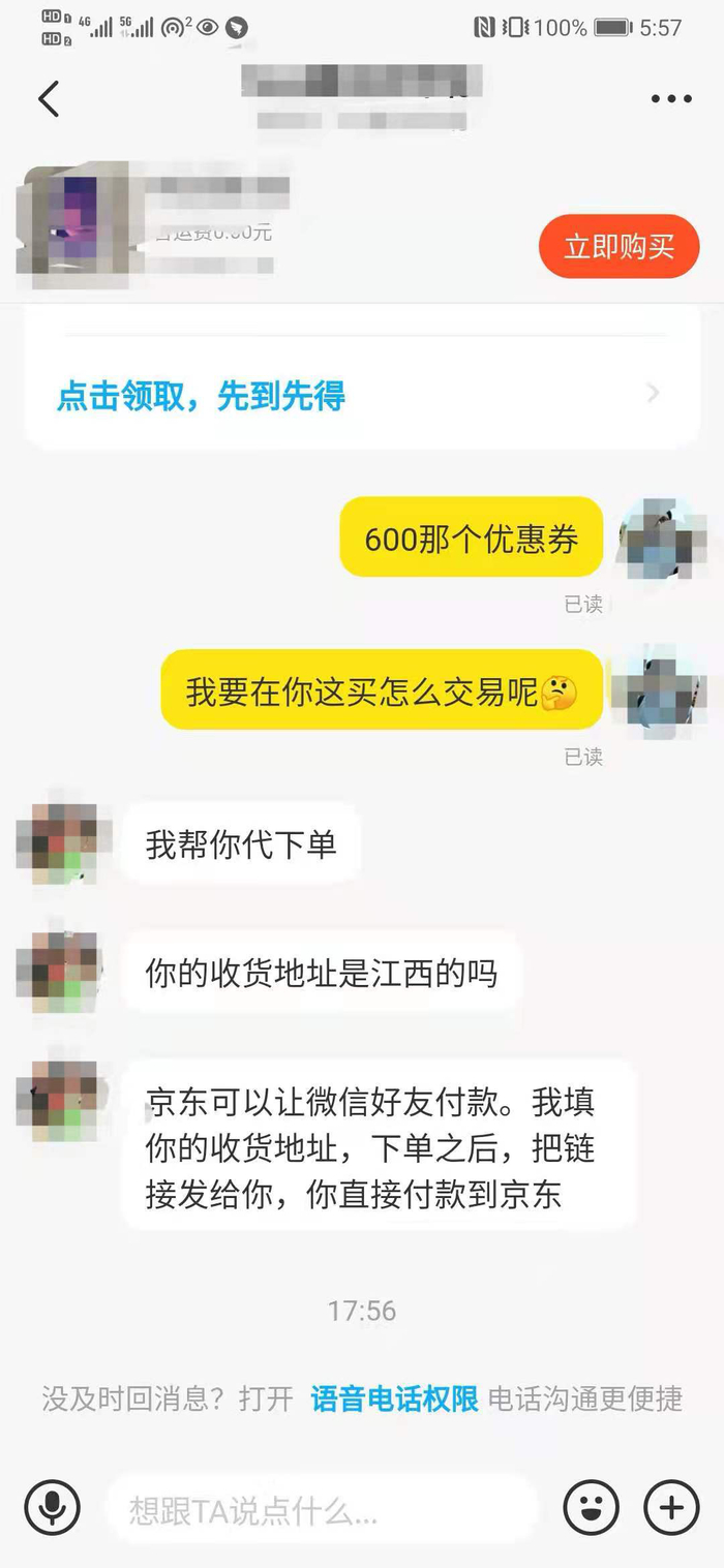 6月15日,贝壳财经记者在某二手平台以相关关键词搜索,发现不少卖家号称能够帮助用户下单,获得“深度”打折。记者发现,其中一个600元优惠券售价50元。“我帮你代下单,比如京东可以让微信好友付款,我填你的收货地址,下单后把链接发给你,你直接付款就行。”卖家告诉记者。