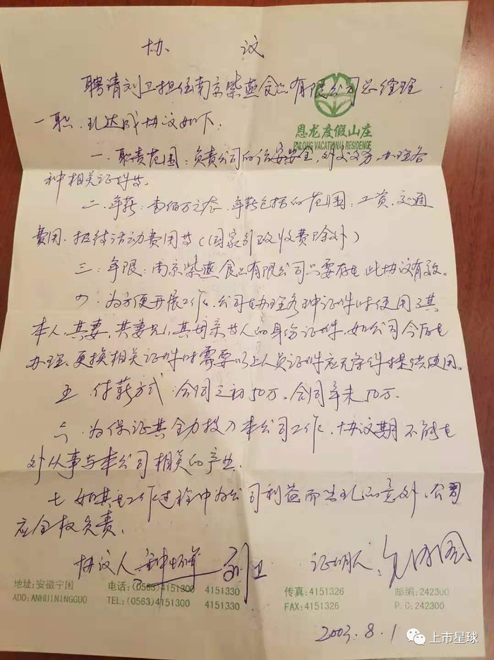 (为了防止我再被社会人士伤害,钟怀军特意在协议第七条列出:如其在工作过程中为公司利益而出现的意外,公司应全权负责。——刘卫)