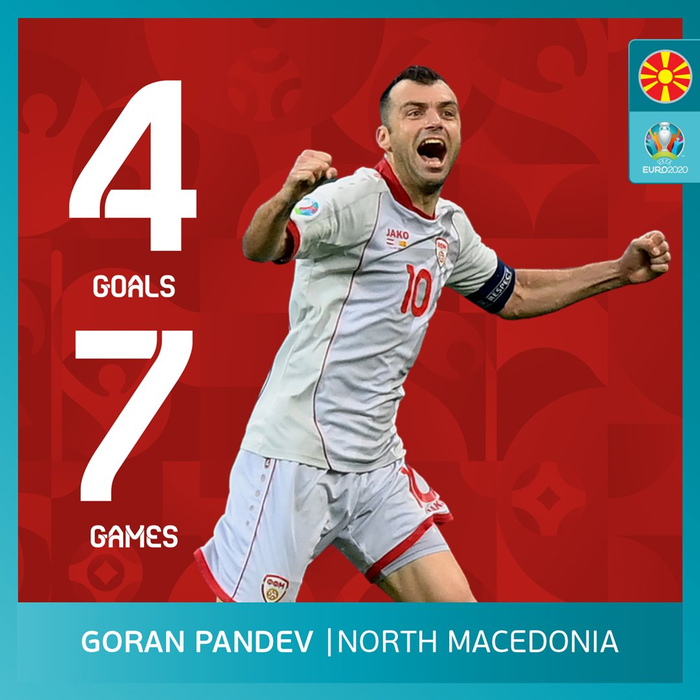 上轮他为北马其顿打入了唯一的进球,成为欧洲杯历史上第二年长的破门球员(37岁零321天),仅次于2008年欧洲杯奥地利球员瓦斯蒂奇(38岁257天),他的38个国家队进球同样排名队史第一。