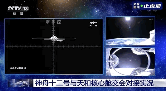 据央视新闻此前报道,中国载人航天工程办公室消息,神舟十二号载人飞船入轨后顺利完成入轨状态设置,于北京时间2021年6月17日15时54分,采用自主快速交会对接模式成功对接于天和核心舱前向端口,与此前已对接的天舟二号货运飞船一起构成三舱(船)组合体,整个交会对接过程历时约6.5小时。这是天和核心舱发射入轨后,首次与载人飞船进行的交会对接。