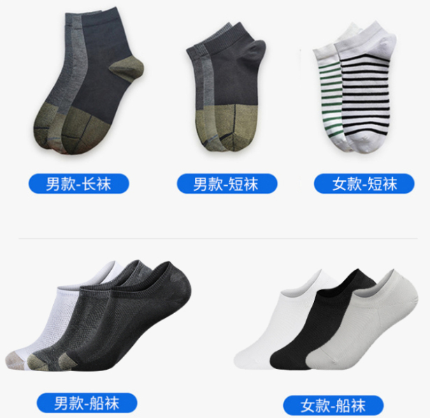 船袜、商务长袜和运动短袜3种款式,除商务长袜没有女款外,其余的男女均有,非常适合全家购入!