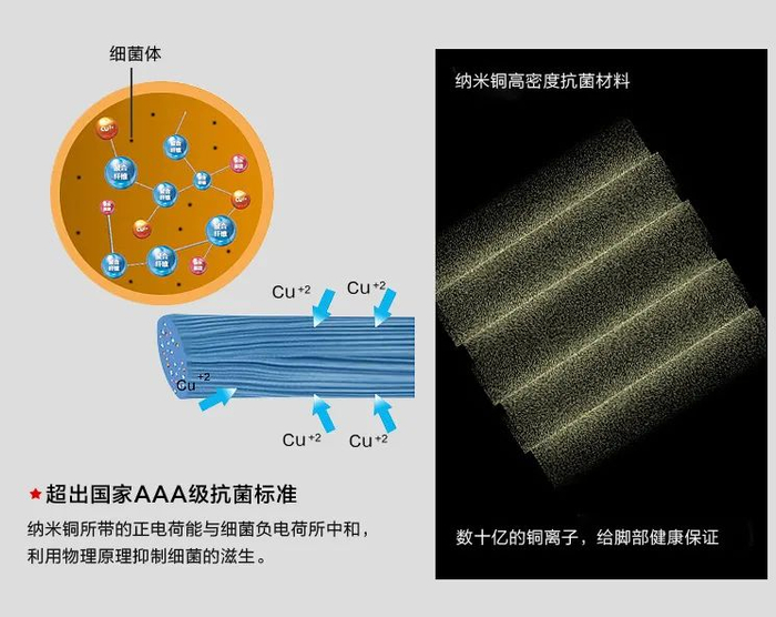 效果之所以这么棒,这是因为铜离子纤维有着99%以上的抑菌率,远超国家AAA级标准。