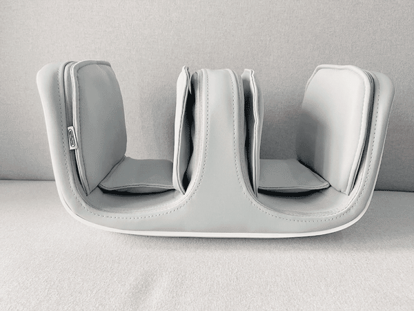 按摩仪是浅灰配色,仿皮材质加透气莱卡布,用起来柔软舒适,耐磨耐脏。