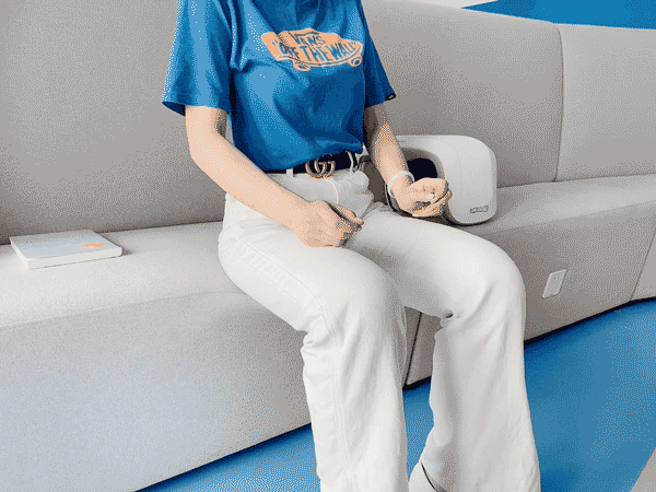 这款多功能按摩仪,可无线使用,方便移动到任何场所,在家里沙发上、床上,坐着、躺着都可以按摩。