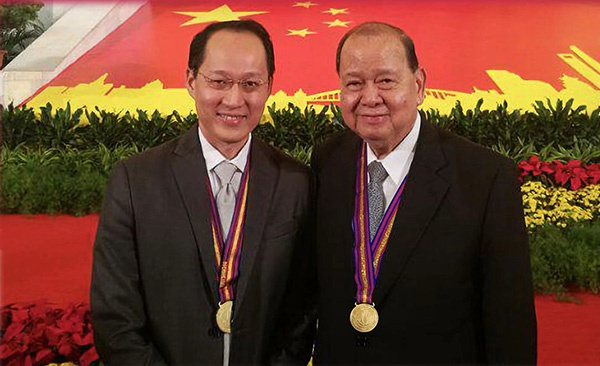 施恭旗(右)和施学理二人双双获得上海市荣誉市民奖章