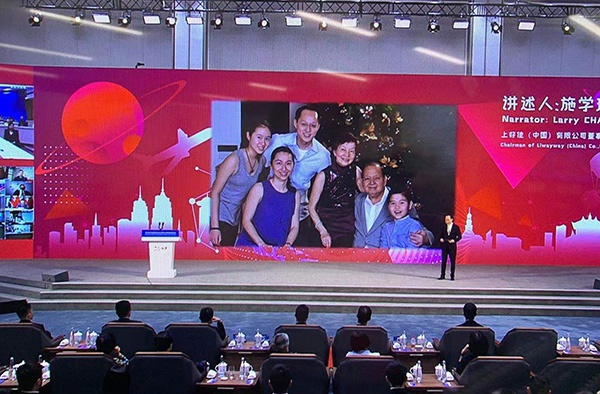 出生在菲律宾的第三代华人、上好佳(中国)有限公司董事长施学理第三个出场,分享了他在上海的经历和故事,他还以视频方式邀父亲同框,父子两代人对中国对上海的感情和感恩,打动了听众。
