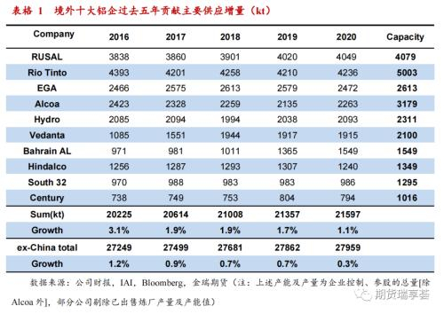 因此本文主要就这十家主要企业的生产情况进行探讨,对未来境外电解铝供应趋势进行分析。