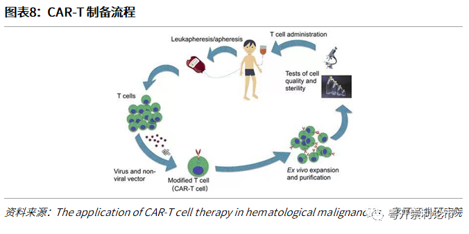 (4)CAR-T疗法一般仅须单次给药,传统的化疗或单克隆抗体药物需要经过多个治疗周期(一般为六至八个周期)长达数月的治疗。