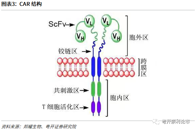 从结构上看,CARs主要由三部分功能区域组成,包括胞内结构域、跨膜结构域和胞外结构域。