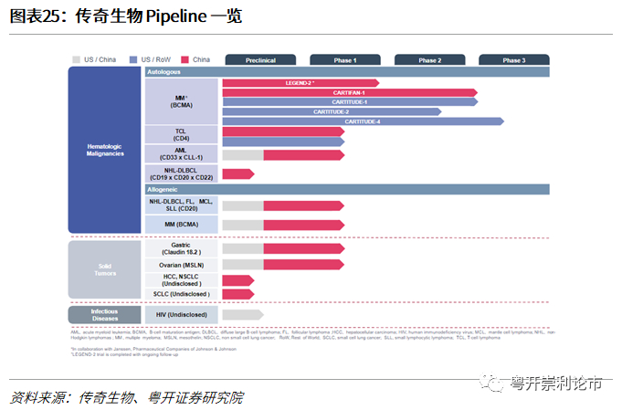 传奇生物(LEGN.O):传奇生物拥有7款处于临床阶段的CAR-T细胞疗法。其中,JNJ-4528是传奇生物与强生联合开发的一款靶向BCMA的CAR-T产品,已于2020年12月向FDA递交了BLA申请,有望于2021年Q3-Q4上市。