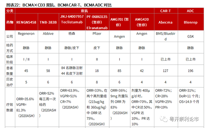 Abecma是全球首款获批上市BCMA CAR-T疗法,根据目前已披露的临床数据,ORR和CR率较创新双抗及ADC疗法存在显著优势。