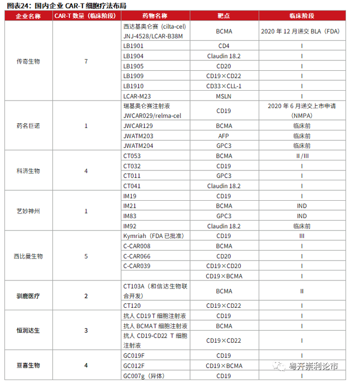 三、国内CAR-T细胞疗法企业布局