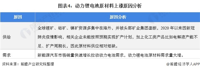 原标题:2021年锂电池原材料市场价格高涨 一文了解涨价背后的原因和即将带来的影响 来源:前瞻产业研究院