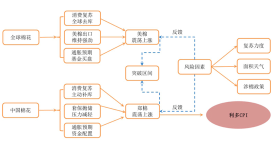 政策风险主要是疆棉禁令和抛储政策。如果疆棉禁令止步于结构型和脉冲型利空,则其风险已经释放;如果引发中美对抗加剧,危及中国棉纺和美棉出口,则转为全球性利空,会导致棉价进一步下跌。目前国储对国内棉价的长期影响变为中性,不过“抛储利空、收储利多”的短期冲击仍在,未来政策难以预判只能跟踪。