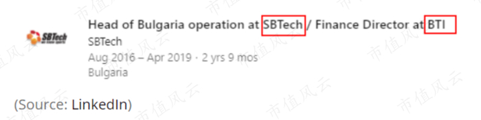 还有一名员工的简历显示,他在某个时期内,同时担任SBTech保加利亚业务的主管和BTi/CoreTech的财务总监。