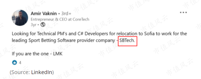 比如,BTi/CoreTech的现任首席执行官Amir Vaknin直接在LinkedIn上为SBTech招聘员工。