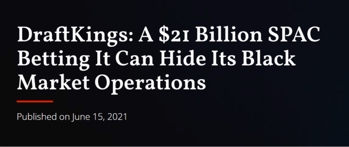体育博彩公司DraftKings被做空:市值200亿美元,隐匿大量黑市业务,估值与业务均高度危险