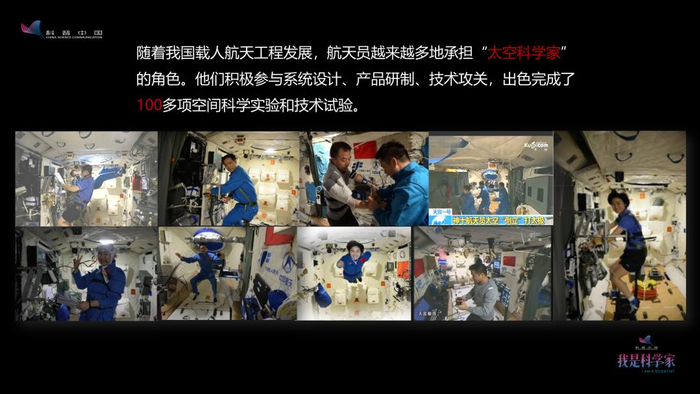 从“神五”到“神十一”,航天员越来越多地承担了“太空科学家”的角色。其中,做实验最主要是从“神六”开始,“神七”主要是出舱活动,“神九”、“神十”和“神十一”三次任务中,航天员完成的实验是特别多的,有100多项空间科学技术研究的实验,其中,在“神十一”33天飞行中,航天员承担了51项的科学试验和技术试验。除了这些,他们还做了一些公益的活动,这些重要活动与实验加起来一共是59项。可以说,他们既是工程师,也是科学家,既是生物学家,又是菜农,既是职业的航天员,也是载人航天的形象大使,在各种角色之间进行转换。