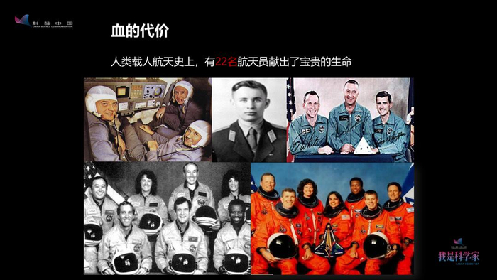 图片中,右上角的那三名航天员是前苏联的三名航天员,他们是在返回过程中座舱失压了,而他们当时没有穿航天服,三个人就牺牲了。所以,从此以后,在航天员出征发射之前以及返回的过程前,必须穿戴好航天服,完成气密性检查,包括面窗要扣好,做好航天员标准的着装状态——这也是人类付出了血的代价换来的一条经验。
