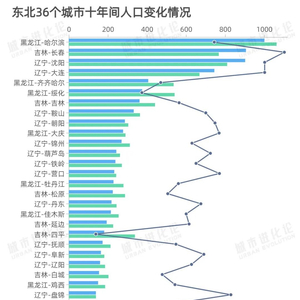 在东北36个地级行政区中,除长春、沈阳、大连外,其余33个常住人口均为负增长。
