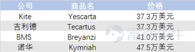 ﹡CAR-T疗法定价备受关注。因为CAR-T 疗法均为自体细胞制备生产,通过基因工程改造T 细胞,使其具备识别和杀死癌细胞能力。正是因为这样,CAR-T 药物无法大规模量产,价格极其昂贵。