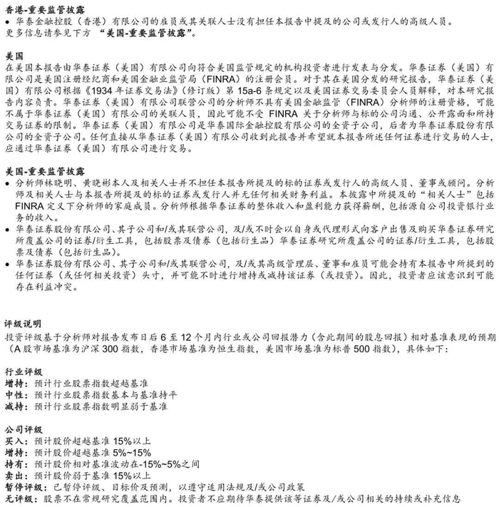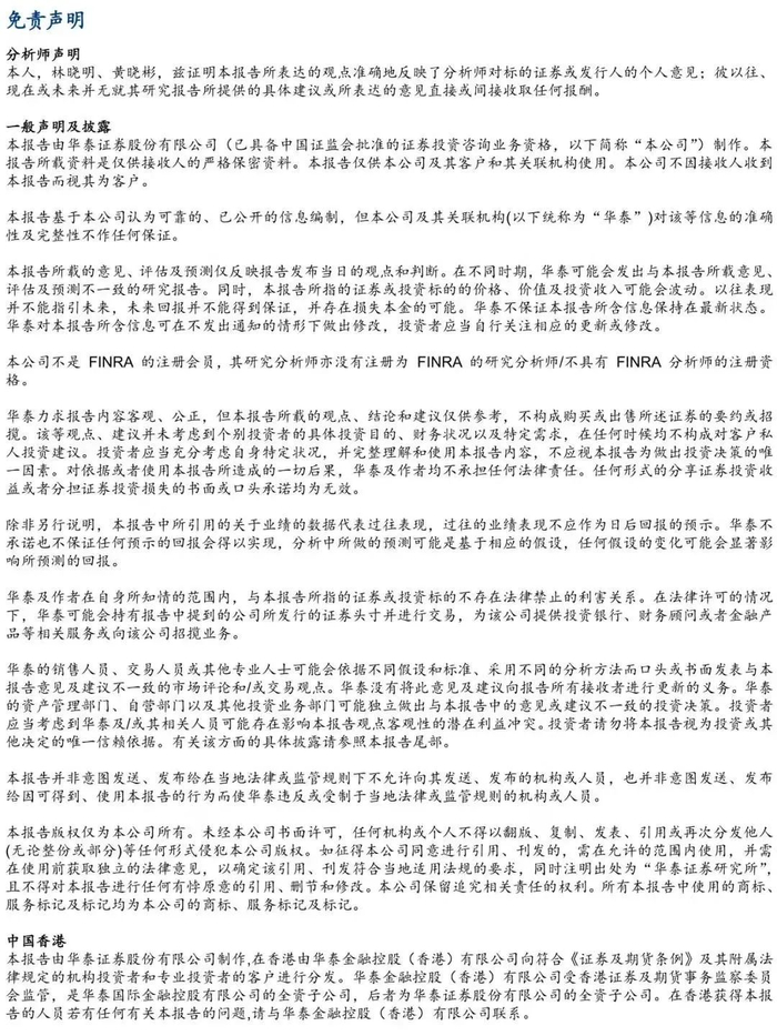 本公众平台不是华泰证券研究所官方订阅平台。相关观点或信息请以华泰证券官方公众平台为准。根据《证券期货投资者适当性管理办法》的相关要求,本公众号内容仅面向华泰证券客户中的专业投资者,请勿对本公众号内容进行任何形式的转发。若您并非华泰证券客户中的专业投资者,请取消关注本公众号,不再订阅、接收或使用本公众号中的内容。因本公众号难以设置访问权限,若给您造成不便,烦请谅解!本公众号旨在沟通研究信息,交流研究经验,华泰证券不因任何订阅本公众号的行为而将订阅者视为华泰证券的客户。