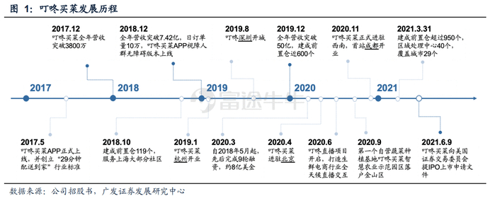 本文精编自广发证券最新研报《叮咚买菜:深耕家庭买菜场景,前置仓精细化运营领跑行业》