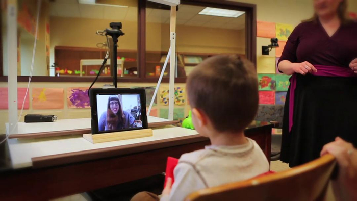 实验结果表明,相对于单纯观看互动性视频的宝宝,体验真实视频通话的宝宝不仅能很好地认出与他视频「遇见」过的人,并与他们表示亲近,而且从视频通话中获取了相关的认知信息、掌握了新的社交模式、学习了新的单词。