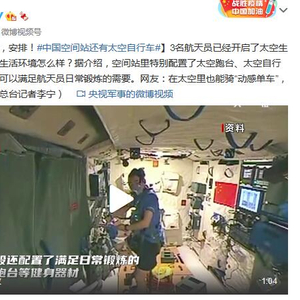 3名航天员已经开启了太空生活,他们的生活环境怎么样?据介绍,空间站里特别配置了太空跑台、太空自行车等器材,可以满足航天员日常锻炼的需要。网友:在太空里也能骑“动感单车”,太牛啦!(总台记者李宁)