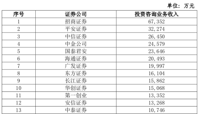 此外,华创证券以1.51亿元收入进入前十,上升8个名次;第一创业证券、安信证券投资咨询业务收入规模接近,均超过1.3亿元,依次排在第11名、第12名,两家进步同样明显。